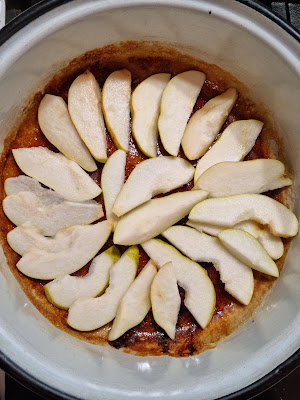 întinde caramelul și pe margini. Când s-a răcit puțin, așezăm feliile de
